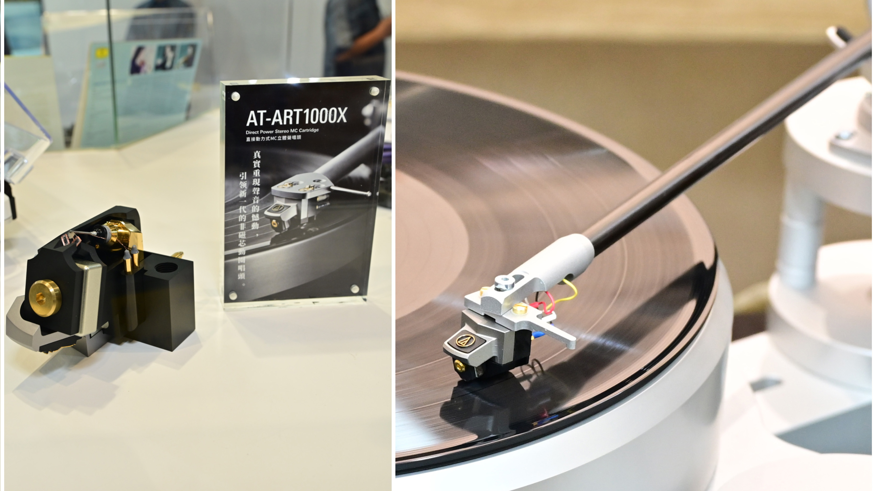 此外,最新推出的 AT-ART1000X 直接動力式MC立體聲唱頭也在此區域展出,供參觀者試聽。AT-ART1000X 唱頭是 Audio-Technica 超過 60 年模擬音訊專業知識的結晶,結合多項技術與高性能設計,致力於提供良好的聽覺體驗。此唱頭採用了直接動力系統,將感應線圈置於針桿基座上,減少了針桿長度和材料對音質的影響,使其能夠生動呈現更細微的聲音細節,實現更真實的高保真播放。