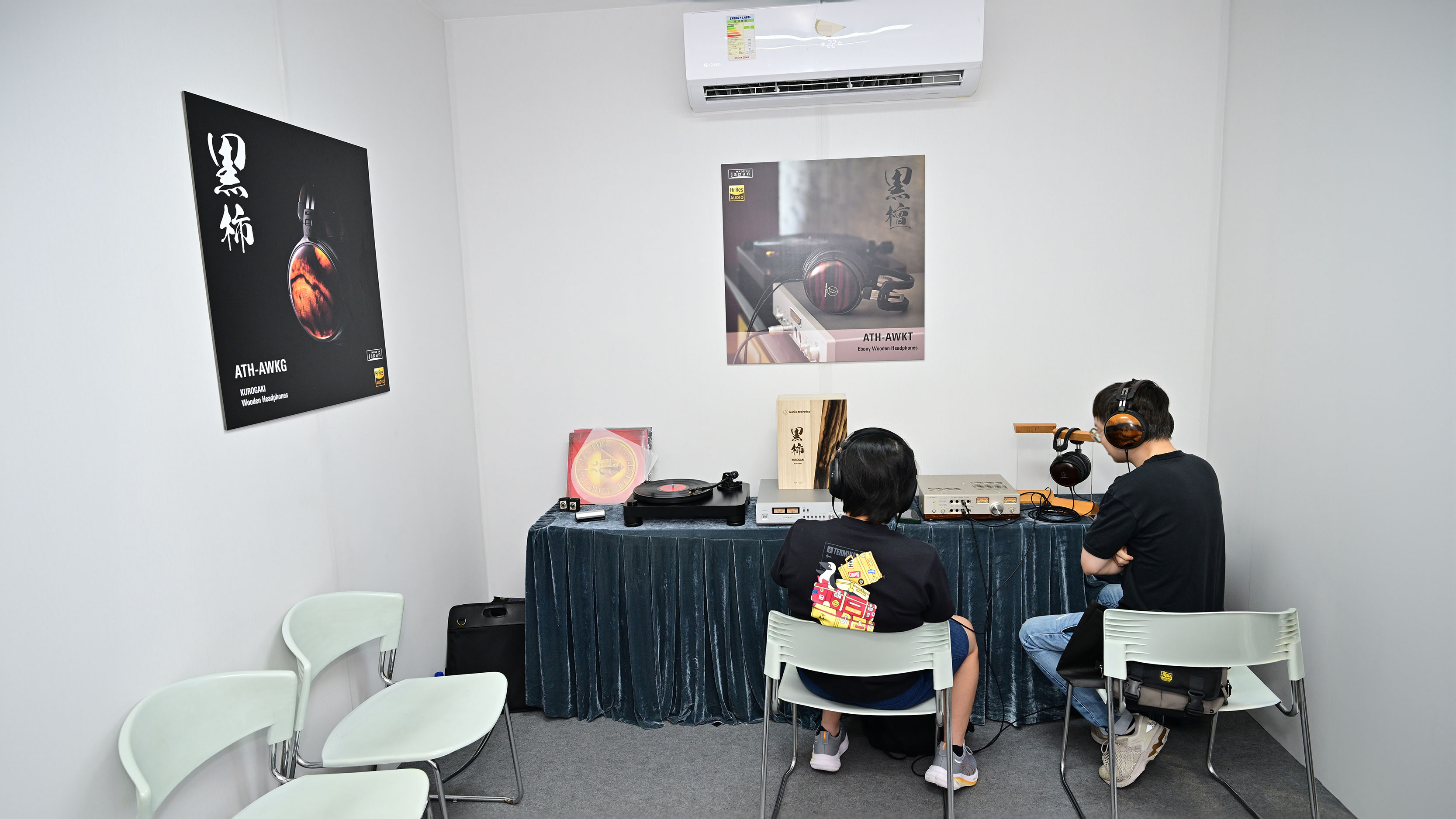 發燒耳機試聽區同樣精彩紛呈,發燒友們可以試聽多款木制耳筒,包括ATH-AWKG 黑柿木制動圈耳筒、ATH-AWKT/f 黑檀木制動圈耳筒,以及ATH-AWAS/f 淺田櫻木制動圈耳筒。