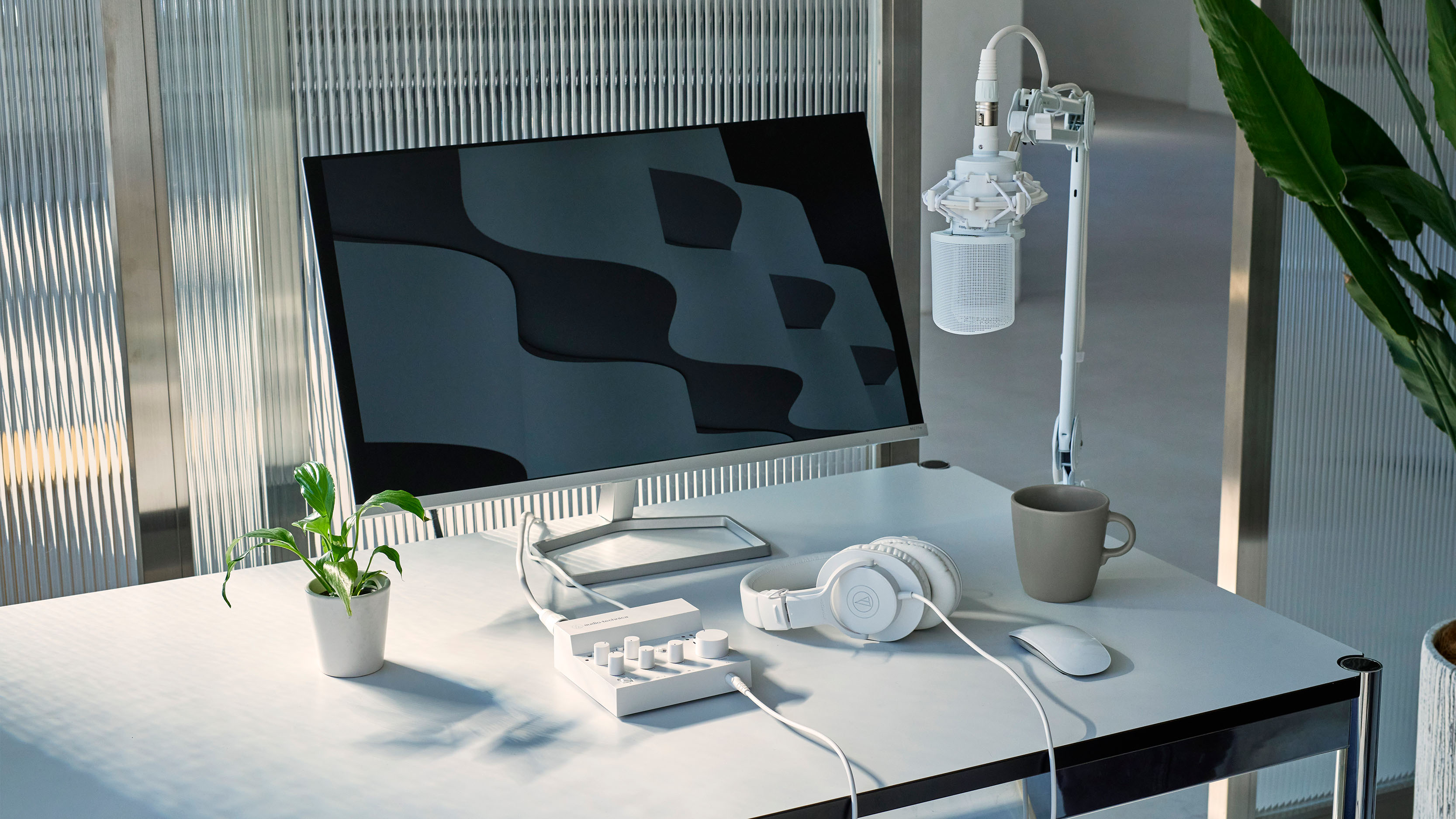 這次的白色系列是對內容創作的回應,越來越多用戶不僅追求聲音品質,也重視工作環境的風格一致性。這一系列不僅性能卓越,視覺上更能融入創作者的桌面美學。因此以白色錄音設備系列誕生。