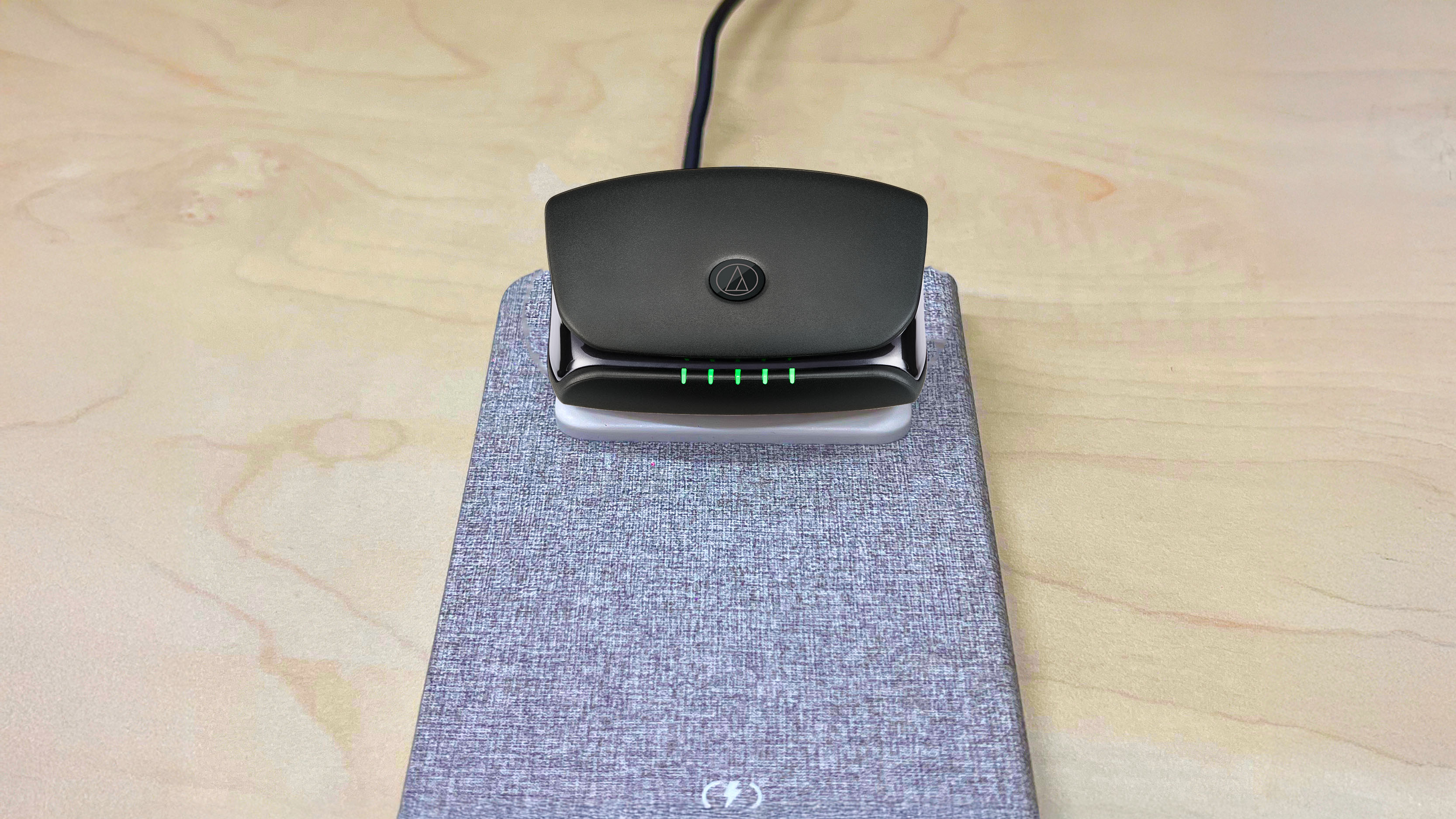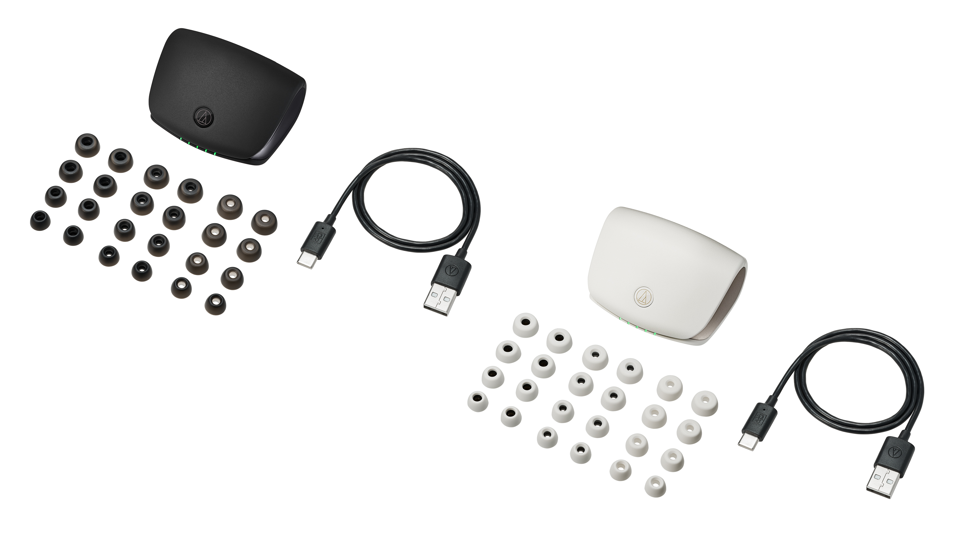充電盒相容無線充電裝置(無線充電器需另行購買),可輕鬆放置進行無線充電。當電量不足時,只需將充電盒放在無線充電器上,或使用隨附的 USB Type-C™ 充電線進行充電,操作簡單便利。