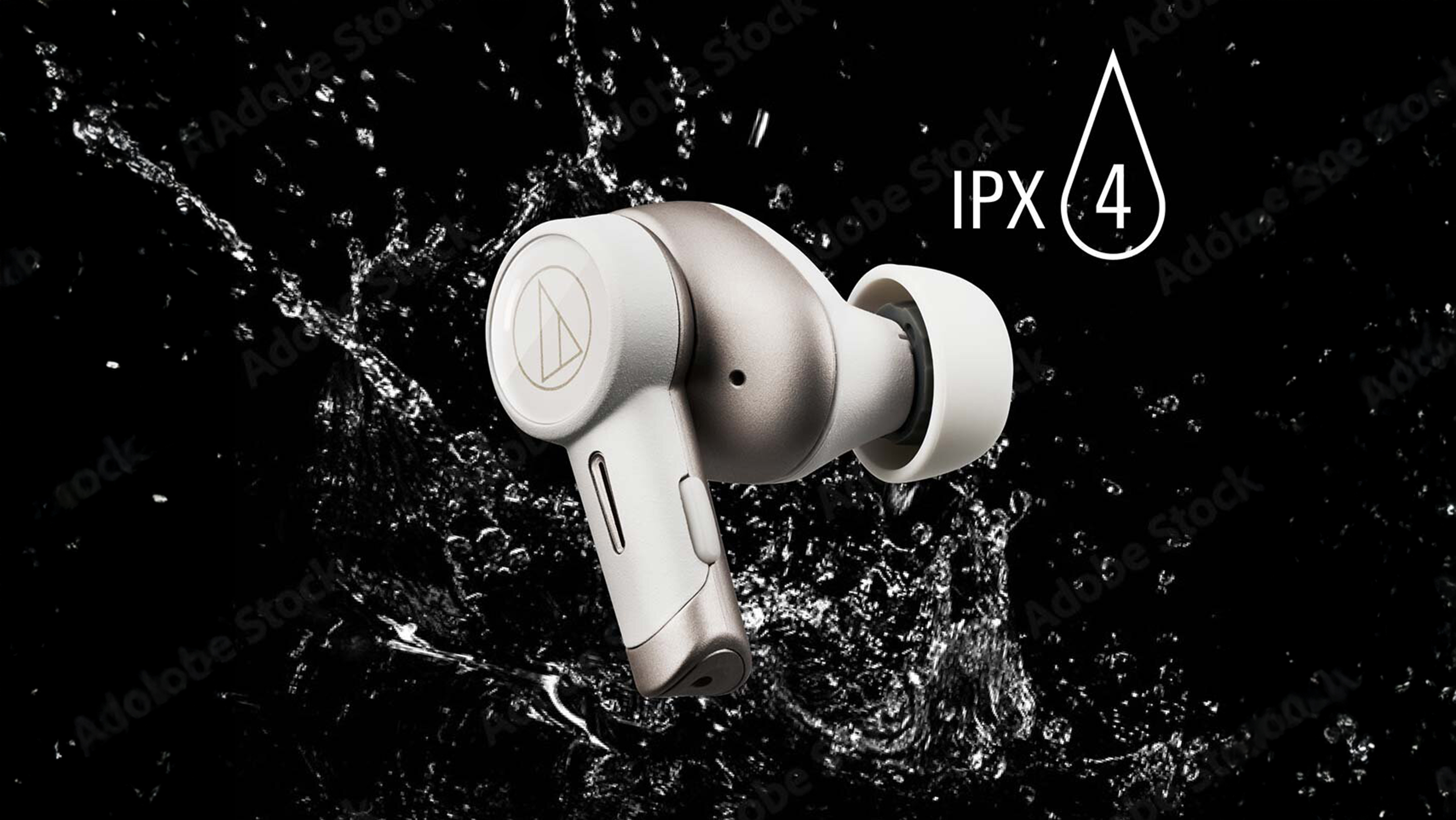 耳機本體具備相當於 IPX4*等級的 JIS/IEC 防護規格,具備防潑水能力,無論是短暫的降雨或運動時流汗,都能持續使用。