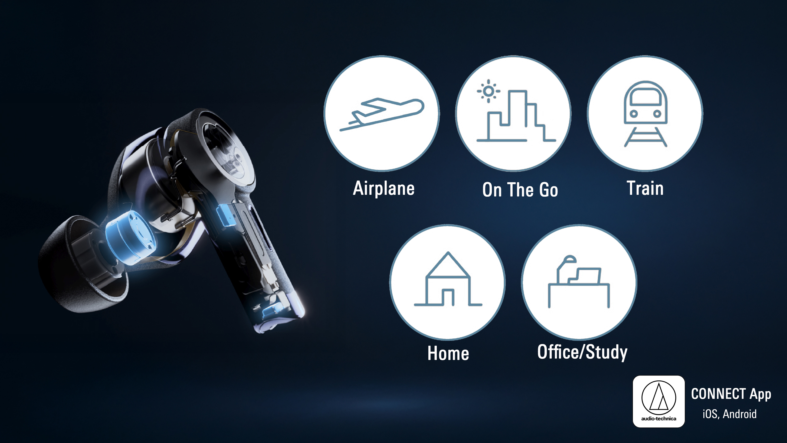 想要獲得更理想的降噪效果,用戶可透過專屬應用程式「A-T Connect」,切換五種預設的場景模式,依據所處環境選擇合適的設定。