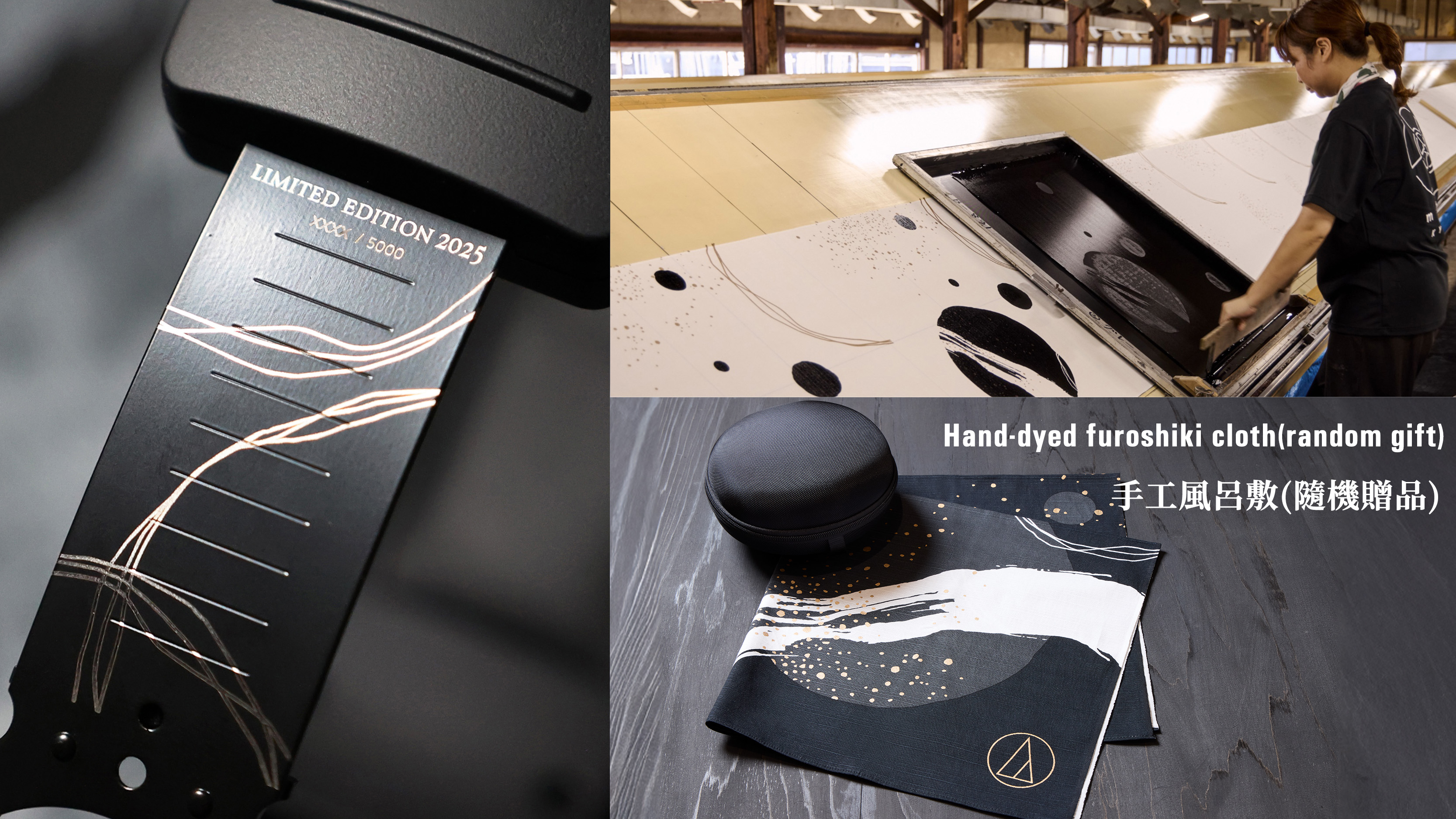 每副耳機皆刻有序列號,購買此限量版耳機的粉絲,還有機會獲得專屬ENSO配件套組,內含耳機收納盒與特製風呂敷布。Audio-Technica此次特別與位於京都、擁有超過110年歷史的染布工坊「
